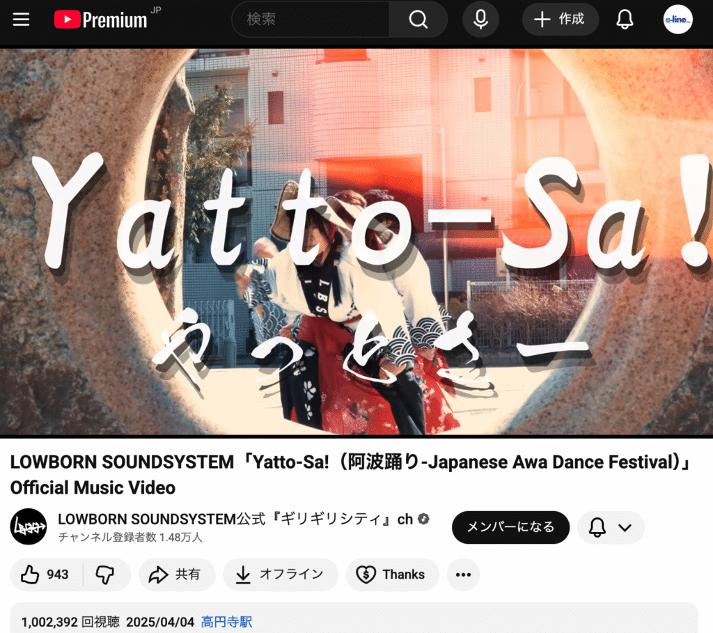 また昨日、我々の阿波踊りのMVが100万回再生を突破いたしました。